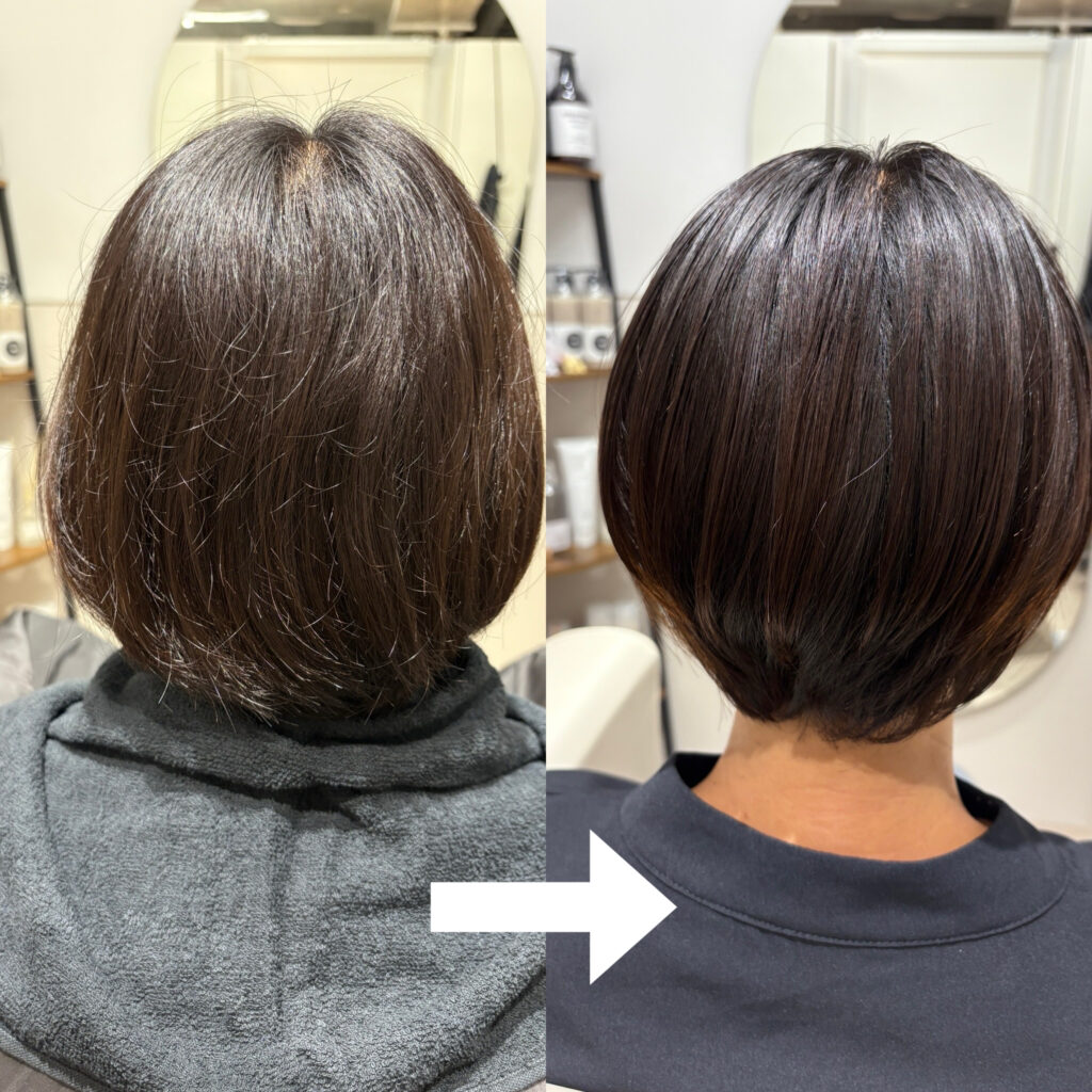 いわば【微還元型・髪質改善トリートメント】ですね。単純な酸熱トリートメントとは少し違いますのでおすすめです^^