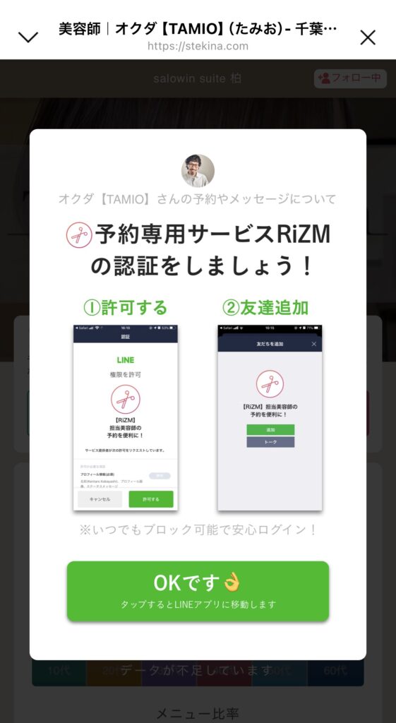 ※予約の確認のためのラインアカウントがダウンロードされます。