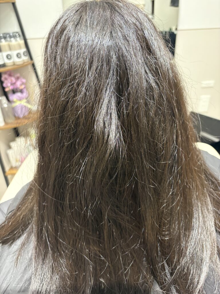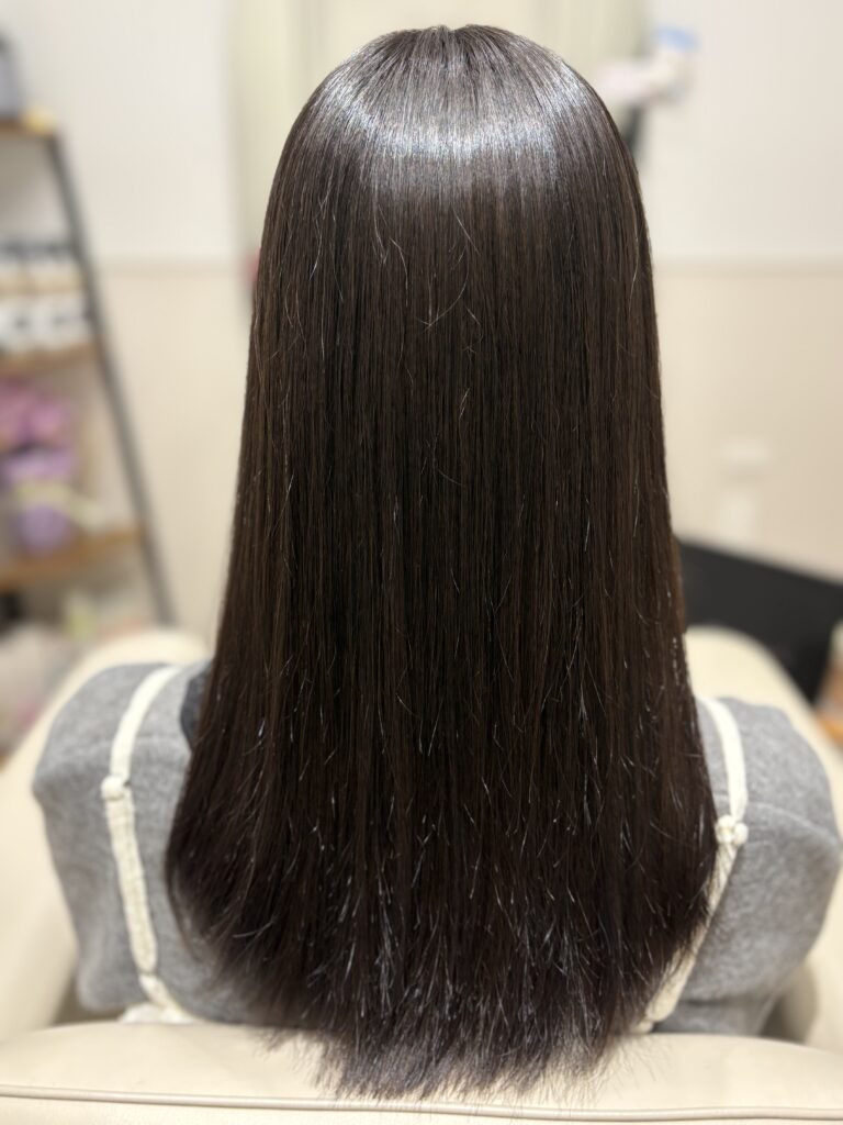 今回は髪に負担のないように中性域のお薬選定で、ゆっくりじっくり慎重にかけております。